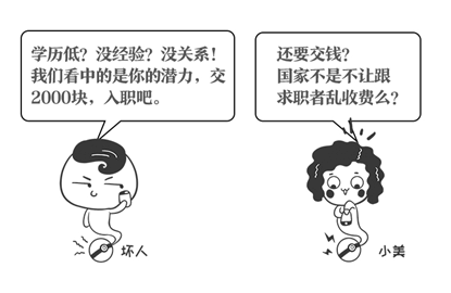 收费是最常见的招聘陷阱之一,很多骗子公司都会以押金、保证金等借口向求职者收取各种费用,得手后便用各种苛刻的要求迫使求职者自动放弃。