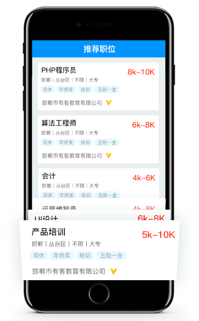 依托智能算法,为你推荐更适合的职位